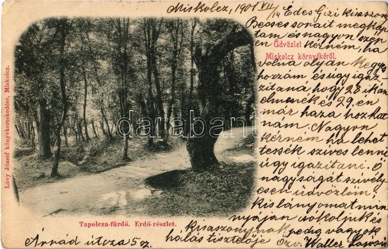Beschreibung: 1901 Miskolc, Tapolca fürdő (Miskolctapolca, Görömbölytapolca), erdő. Kiadja Lövy József (EK)