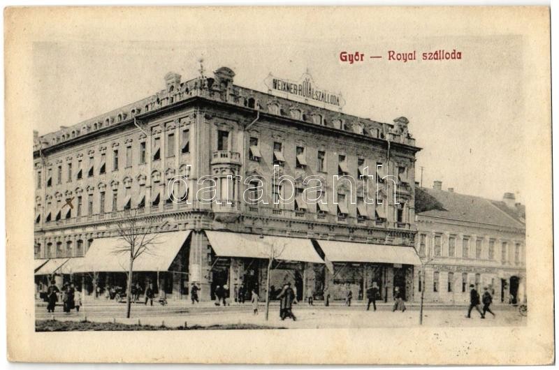 1912 Győr, Meixner Royal és Fehér Hajó szálloda https://www.darabanth.com/de/348-Fernauktion/348.0/Ansichtskarten/Ungarn~1000005/1912-Gyor-Meixner-Royal-es-Feher-Hajo-szalloda~II1980276
