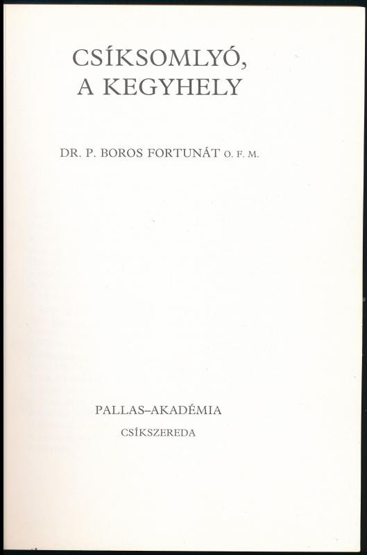 Dr. Boros Fortunát: Csíksomlyó, a kegyhely. Csíkszereda, 1994, Pallas-Akadémia. Kiadói papírkötés.