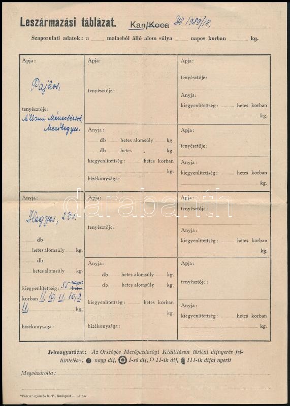 1944 Mangalicatenyésztők Országos Egyesületének származási igazolványa... https://www.darabanth.com/de/348-Fernauktion/348.0/Kunst-Dokumente-andere-Sammelgebiete/Dokument~500017/1944-Mangalicatenyesztok-Orszagos-Egyesuletenek-szarmazasi-igazolvanya-hatoldalan-tabla~II1975974