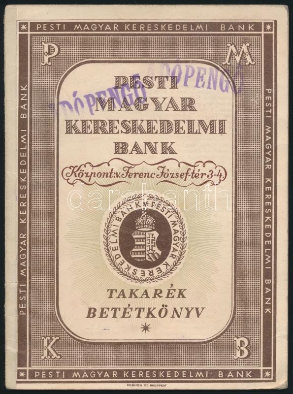 1946 A Pesti Magyar Kereskedelmi Bank takarék betétkönyve adópengőben ... https://www.darabanth.com/de/348-Fernauktion/348.0/Kunst-Dokumente-andere-Sammelgebiete/Dokument~500017/1946-A-Pesti-Magyar-Kereskedelmi-Bank-takarek-betetkonyve-adopengoben-az-inflacios-idoszakbC3~II1979044