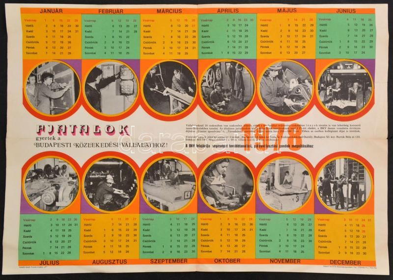 1978 Fiatalok, gyertek a Budapesti Közlekedési Vállalathoz, falinaptár... https://www.darabanth.com/de/348-Fernauktion/348.0/Kunst-Dokumente-andere-Sammelgebiete/Drucksachen~500029/1978-Fiatalok-gyertek-a-Budapesti-Kozlekedesi-Vallalathoz-falinaptar-hajtott-41-5C39759-cm~II1977755