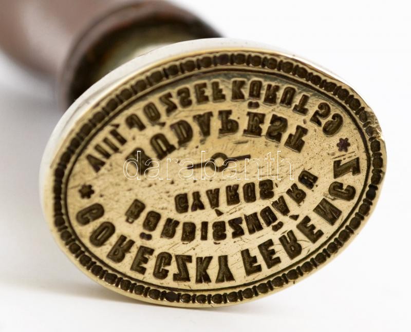 Réz pecsétnyomó, "Goreczky Ferenc bőrdíszműáru gyáros, Budapest", h: 1... https://www.darabanth.com/de/348-Fernauktion/348.0/Kunst-Dokumente-andere-Sammelgebiete/Flohmarkt~500011/Rez-pecsetnyomo-Goreczky-Ferenc-bordiszmuaru-gyaros-Budapest-h-11-5-cm~II1978531