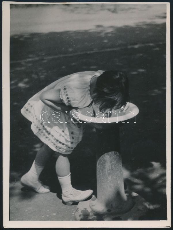 Beschreibung: cca 1934 Kinszki Imre (1901-1945) budapesti fotóművész pecséttel jelzett vintage fotója (Am Brunnen), 17,5x13 cm