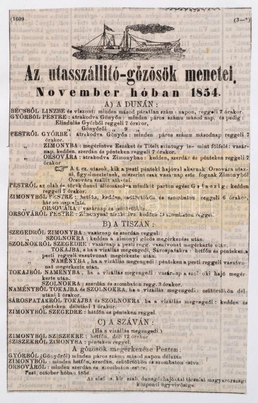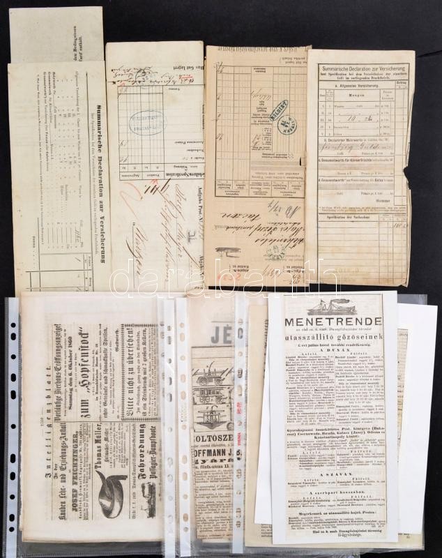 Beschreibung: 1840-1877 Hajózással kapcsolatos dokumentumok gyűjteménye. DDSG fuvarlevelek, korabeli újsághirdetések, hajómenetrendekkel