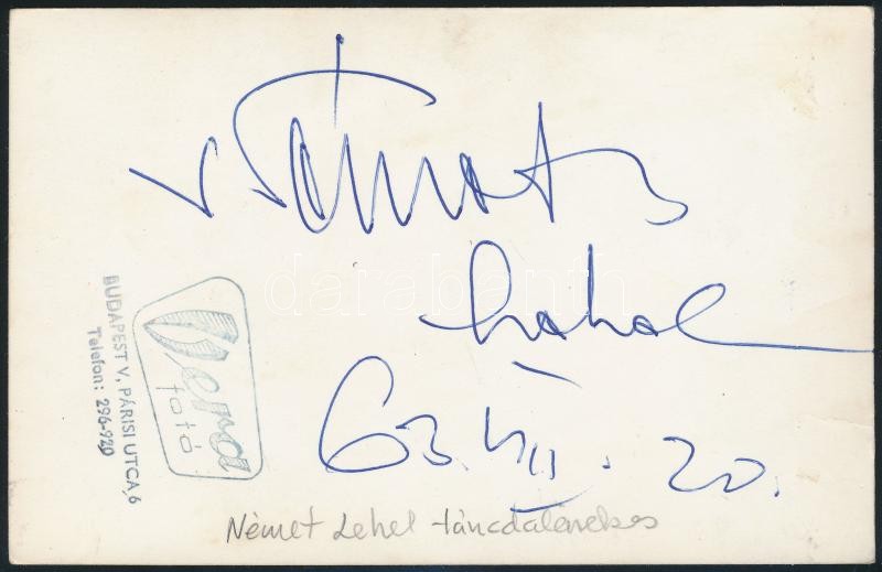 Beschreibung: Németh Lehel (1932-2005) táncdalénekes aláírása az őt ábrázoló fotó hátoldalán