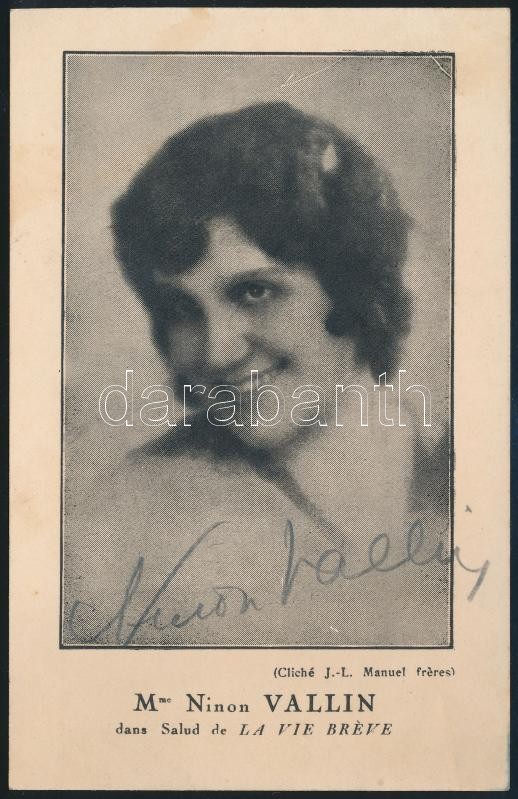 Ninon Vallin francia operaénekesnő (1886-1961) aláírása az őt ábrázoló... https://www.darabanth.com/de/348-Fernauktion/348.0/Kunst-Dokumente-andere-Sammelgebiete/Signatur~500019/Ninon-Vallin-francia-operaenekesno-1886-1961-alairasa-az-ot-abrazolo-kepen~II1976520