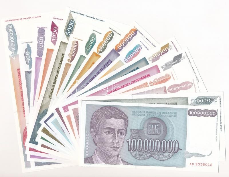 Yugoslavia 1992. 100 Dinara + 500 Dinara + 1000 Dinara + 5000 Dinara + 10.000 Dinara + 50.000 Dinara + 1993. 100.000 Dinara + 500.000 Dinara + 1.000.000 Dinara + 5.000.000 Dinara + 10.000.000 Dinara + 50.000.000 Dinara + 100.000.000 Dinara + 500.000.000 Dinara + 1.000.000.000 Dinara + 10.000.000.000 Dinara C:UNC