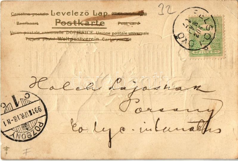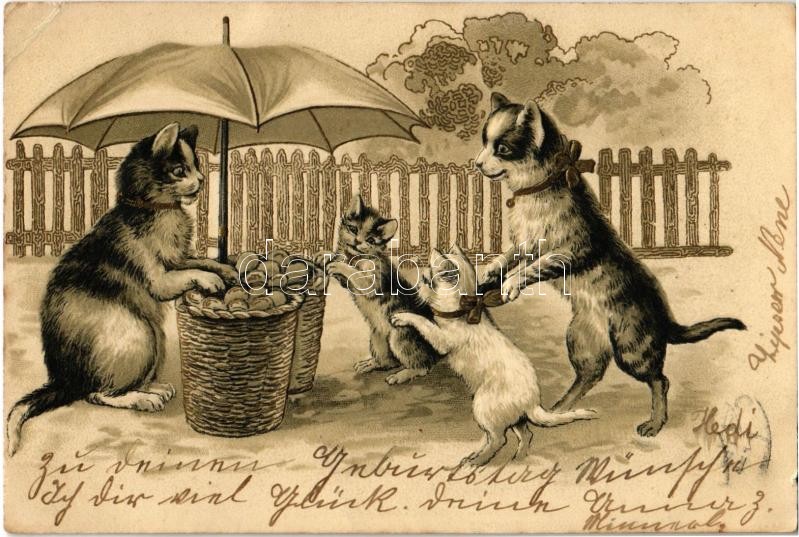 Beschreibung: 1902 Cats with baskets. Emb. litho (EK)