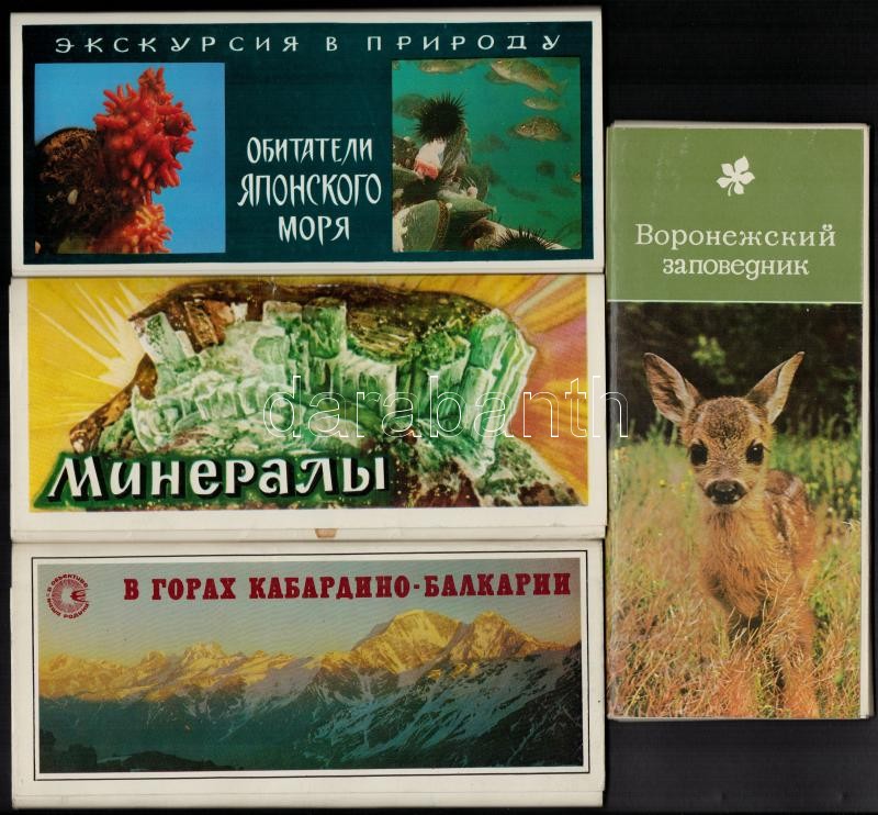 4 db MODERN képeslapfüzet összesen 81 lappal: élővilág a Szovjetunió területéről, állatok, tengeri élet, ásványok, hegyvidék / 4 modern postcard booklets with 81 postcards alltogether: wildlife and sealife from the Soviet Union, minerals, mountain