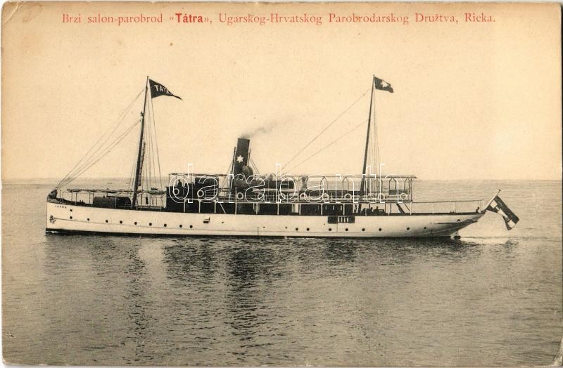 Beschreibung: "Tátra" egycsavaros tengeri személyszállító gőzhajó / Brzi salon-parobrod "Tátra" Ugarskog-Hrvatskog Parobrodarskog Druztva, Rieka / Quick saloon-steamer "Tatra" the Hungarian-Croatian steamship company (EK)