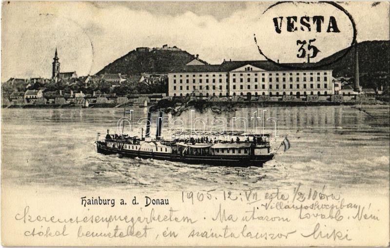 Beschreibung: Vesta oldalkerekes gőzhajó Hainburg an der Donau-nál / Hungarian passenger steamship in Hainburg an der Donau