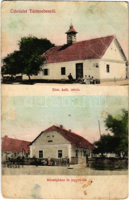 Túrterebes, Turulung; Római katolikus iskola, Községháza és jegyző lak. Kiadja a Fogyasztási Szövetkezet / Catholic school, town hall, notary office (kopott sarkak / worn corners)