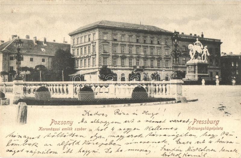 Beschreibung: 1903 Pozsony, Pressburg, Bratislava; Koronázási emlékmű. Verlag "Bediene dich allein" / Krönungshügelplatz / coronation memorial, monument (EK)