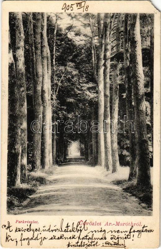 Beschreibung: 1905 Aranyosmarót, Zlaté Moravce; Park. Kiadja Brunczlik I. / park, alley (EM)