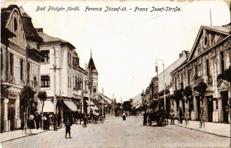 1931 Pöstyén, Pistyan, Piestany; Franz Josef Straße / Ferenc József út... https://www.darabanth.com/de/349-Fernauktion/349.0/Ansichtskarten/Slowakei~2000007/1931-Postyen-Pistyan-Piestany-Franz-Josef-StraC39Fe-Ferenc-Jozsef-ut-uzletek-Kiadja-Donat~II1980825