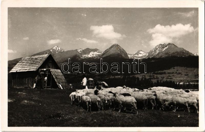 1946 Tátra, Tatry; Csorba, juhnyáj / Strba, flock of sheep https://www.darabanth.com/de/349-Fernauktion/349.0/Ansichtskarten/Slowakei~2000007/1946-Tatra-Tatry-Csorba-juhnyaj-Strba-flock-of-sheep~II1981474