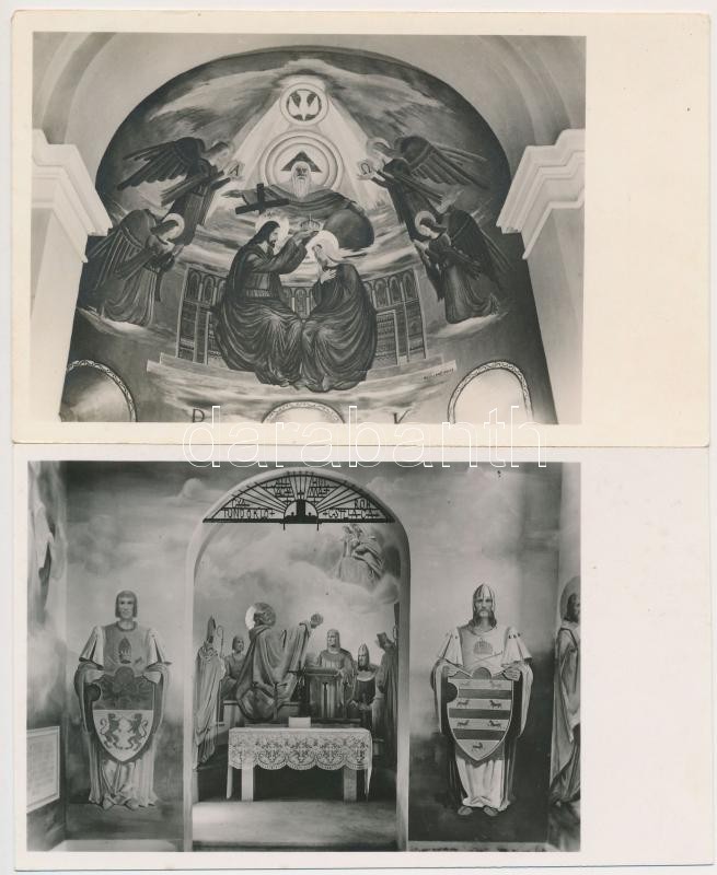 Beschreibung: Deáki, Diakovce; Bencés plébániatemplom, belső freskókkal / church interior with frescos - 8 db régi képeslap / 8 pre-1945 postcards