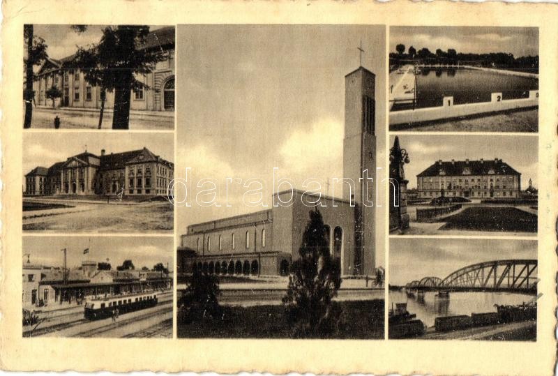Komárom, Komárno; mozaiklap, vasútállomás, templom, híd, strand / mult... https://www.darabanth.com/de/349-Fernauktion/349.0/Ansichtskarten/Slowakei~2000007/Komarom-Komarno-mozaiklap-vasutallomas-templom-hid-strand-multi-view-postcard-with-rai~II1885546