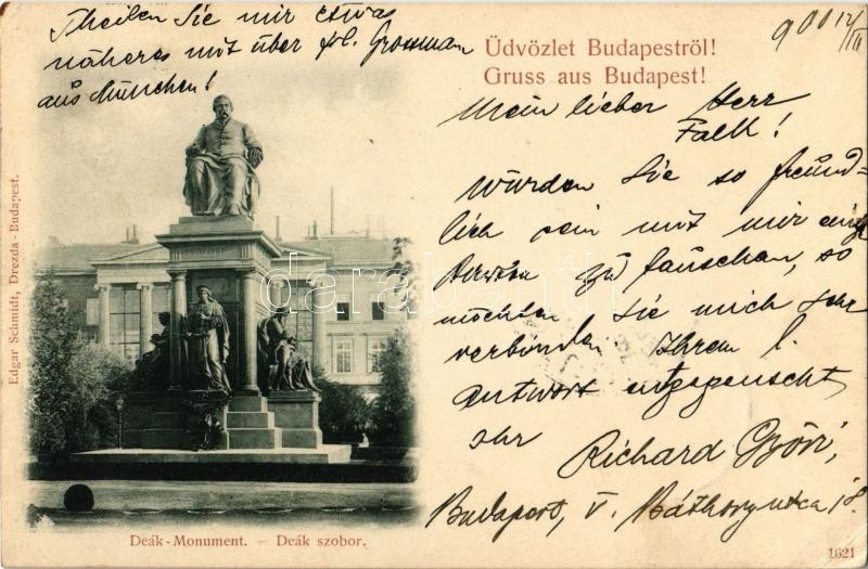 1900 Budapest V. Deák Ferenc szobor. Edgar Schmidt (EK) https://www.darabanth.com/de/349-Fernauktion/349.0/Ansichtskarten/Ungarn~2000005/1900-Budapest-V-Deak-Ferenc-szobor-Edgar-Schmidt-EK~II1985883