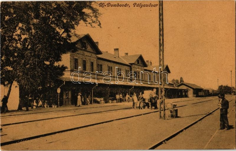 Dombóvár, Új-Dombóvár; Pályaudvar, vasútállomás, vasutasok, vagonok https://www.darabanth.com/de/349-Fernauktion/349.0/Ansichtskarten/Ungarn~2000005/Dombovar-Uj-Dombovar-Palyaudvar-vasutallomas-vasutasok-vagonok~II1981832