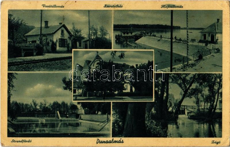 Dunaalmás, Vasútállomás, Szeretetház, Hajóállomás, Strandfürdő, zúgó (... https://www.darabanth.com/de/349-Fernauktion/349.0/Ansichtskarten/Ungarn~2000005/Dunaalmas-Vasutallomas-Szeretethaz-Hajoallomas-Strandfurdo-zugo-azott-sarok-wet~II1980985