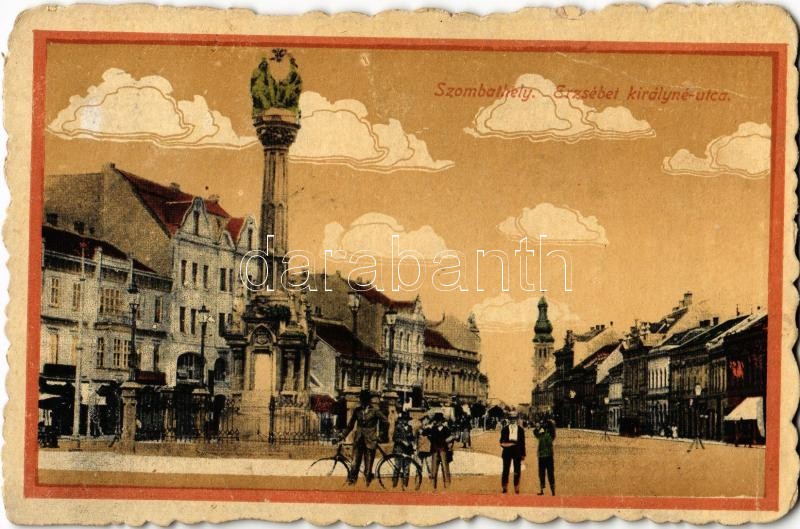 Szombathely, Erzsébet királyné utca, Szentháromság szobor, kerékpáros ... https://www.darabanth.com/de/349-Fernauktion/349.0/Ansichtskarten/Ungarn~2000005/Szombathely-Erzsebet-kiralyne-utca-Szentharomsag-szobor-kerekparos-EB~II1986160