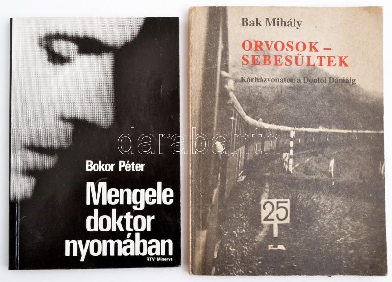 Bokor Péter: Mengele doktor nyomában. Bp., 1987, RTV - Minerva. Papírkötésben, jó állapotban. + Bak Mihály: Orvosok - sebesültek. Kórházvonaton a Dontól Dániáig. Bp., 1987, szerzői. Papírkötésben, jó állapotban.
