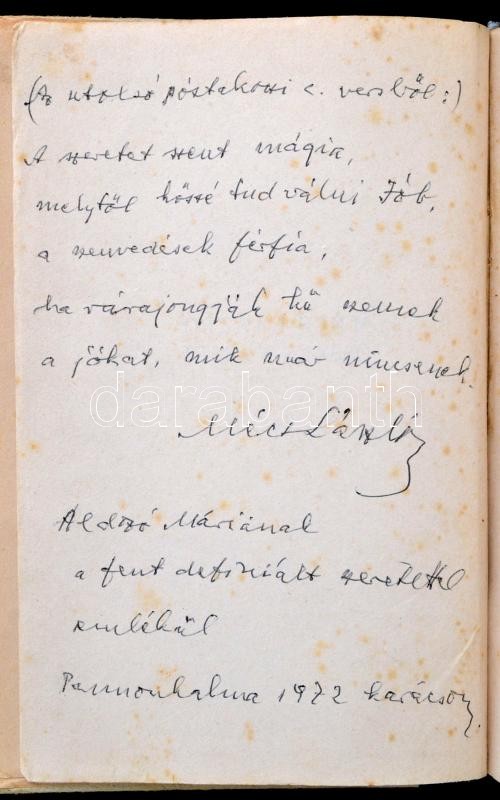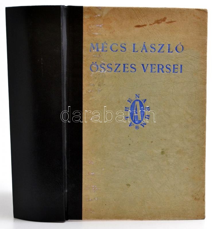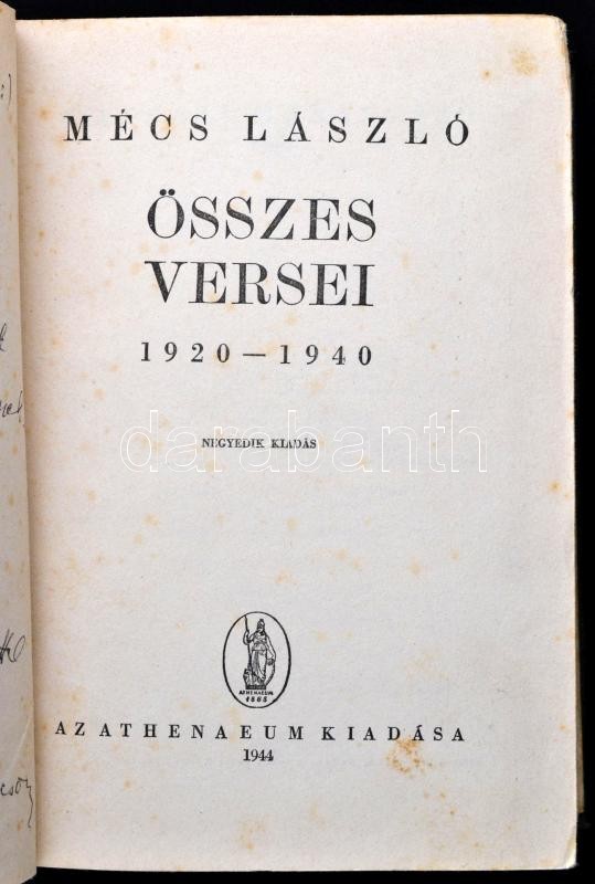 Mécs László összes versei 1920-1940. Bp., 1944, Athenaeum, 760 p. Negyedik kiadás. Javított, részben átkötött félműbőr-kötésben, néhány Mécs Lászlóról szóló újságcikkel. A szerző, Mécs László (1895-1978) szerzetes, költő, lapszerkesztő dedikációjával, dátumozva.