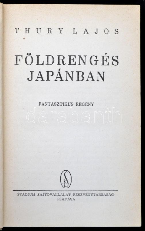 Thury Lajos: Földrengés Japánban. Fantasztikus regény. Bp., [1942], Stádium. A szerző dedikációjával, humoros ex libris-szel. Kicsit kopott félvászon kötésben, jó állapotban.