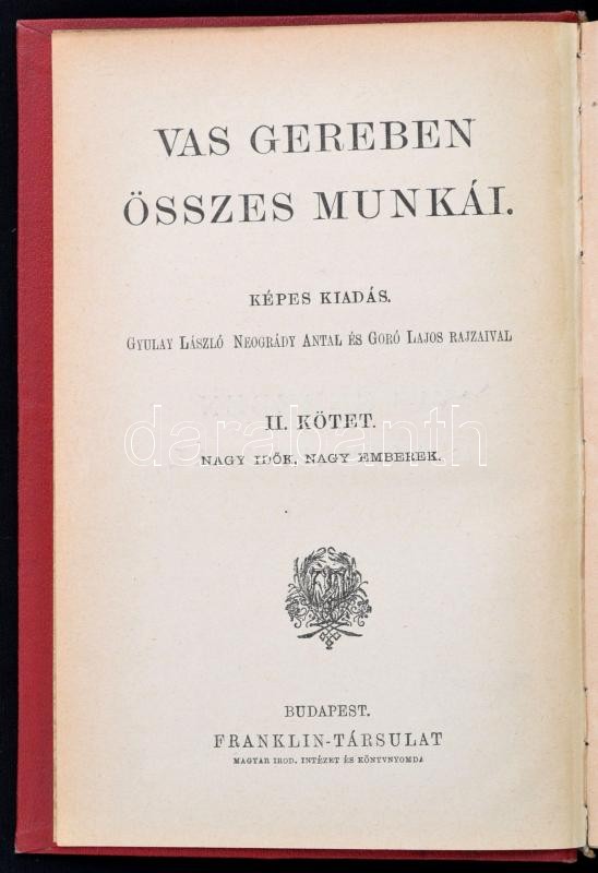 Vas Gereben: Nagy idők, nagy emberek. Magyar korrajz. Vas Gereben összes munkái. II. kötet. Gyulay László rajzaival. Bp.,é.n.,Franklin-Társulat, 479+1 p. Hetedik kiadás. Kiadói aranyozott, festett egészvászon-kötésben, Franklin-kötés, kissé laza fűzéssel.