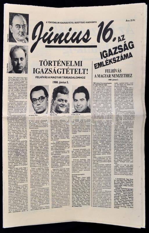 Jánosi Katalin - Sipos Levente (szerk.): A temetés, 1989. június 16. Bp., Nagy Imre Alapítvány. Kiadói papírkötés, jó állapotban + Az igazság emlékszáma