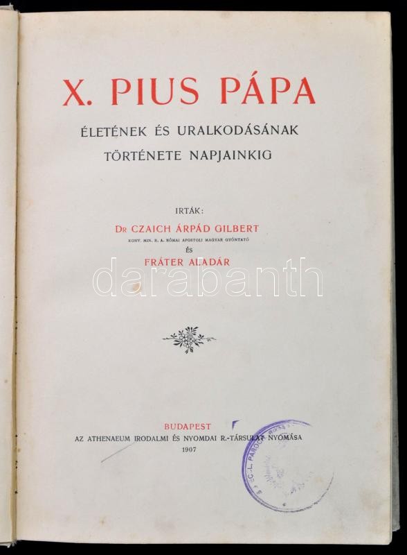 Czaich Árpád Gilbert - Fráter Aladár: X. Pius pápa életének és uralkod... https://www.darabanth.com/de/349-Fernauktion/349.0/Bucher/Bucher-Religion~1500014/Czaich-Arpad-Gilbert-Frater-Aladar-X-Pius-papa-eletenek-es-uralkodasanak-tortenete-n~II1981083