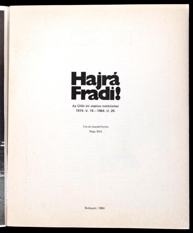 Hajrá Fradi! (Az Üllői úti stadion mérkőzései 1974-1984). Budapest, 19... https://www.darabanth.com/de/349-Fernauktion/349.0/Bucher/Bucher-Sport-Schach-Bergsteigen~1500002/Hajra-Fradi-Az-Ulloi-uti-stadion-merkozesei-1974-1984-Budapest-1984-plus-hozza-3-db-nyom~II1982474