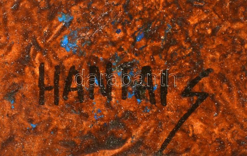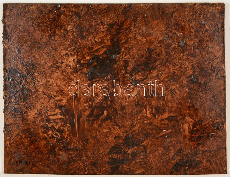 Beschreibung: Hantai jelzéssel: Kompozíció. Vegyes technika, farost, foltos, 42×53 cm
