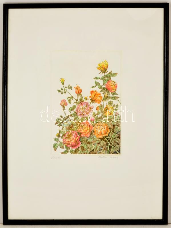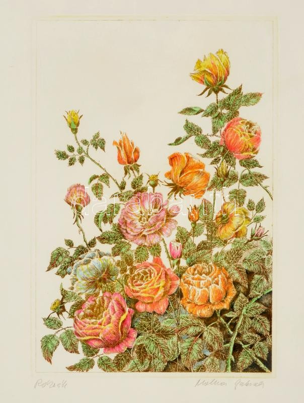 Molnár Gabriella (1940-): Rózsák. Színezett rézkarc, papír, jelzett, ü... https://www.darabanth.com/de/349-Fernauktion/349.0/Gemalde-und-Grafiken/Gemalde-und-Grafiken~500001/Molnar-Gabriella-1940-Rozsak-Szinezett-rezkarc-papir-jelzett-uvegezett-fa-keretben-2~II1972607