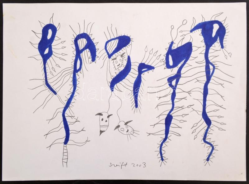 Szeift Béla (1944-2012):Vidám férgek, vegyes technika, papír, jelzett,... https://www.darabanth.com/de/349-Fernauktion/349.0/Gemalde-und-Grafiken/Gemalde-und-Grafiken~500001/Szeift-Bela-1944-2012Vidam-fergek-vegyes-technika-papir-jelzett-30C39742-cm~II1972736
