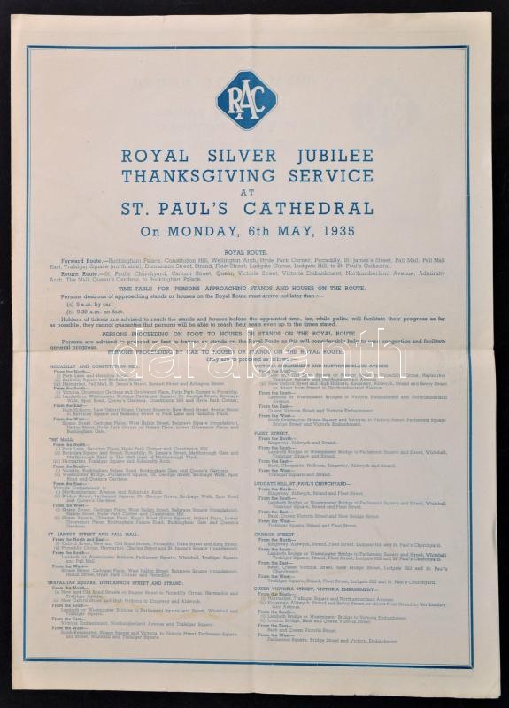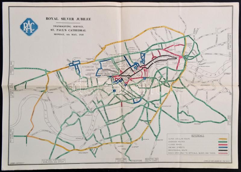 1935 Royal Silver Jubilee Thanksgiving Service útvonaltérkép, 35×50 cm https://www.darabanth.com/de/349-Fernauktion/349.0/Kunst-Dokumente-andere-Sammelgebiete/Landkarten~500029/1935-Royal-Silver-Jubilee-Thanksgiving-Service-utvonalterkep-35C39750-cm~II1985377