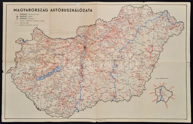1953 Magyarország autóbuszhálózata, MÁVAUT vonalakkal, hátoldalon Orsz... https://www.darabanth.com/de/349-Fernauktion/349.0/Kunst-Dokumente-andere-Sammelgebiete/Landkarten~500029/1953-Magyarorszag-autobuszhalozata-MAVAUT-vonalakkal-hatoldalon-Orszagos-Takarekpenztar-~II1984551