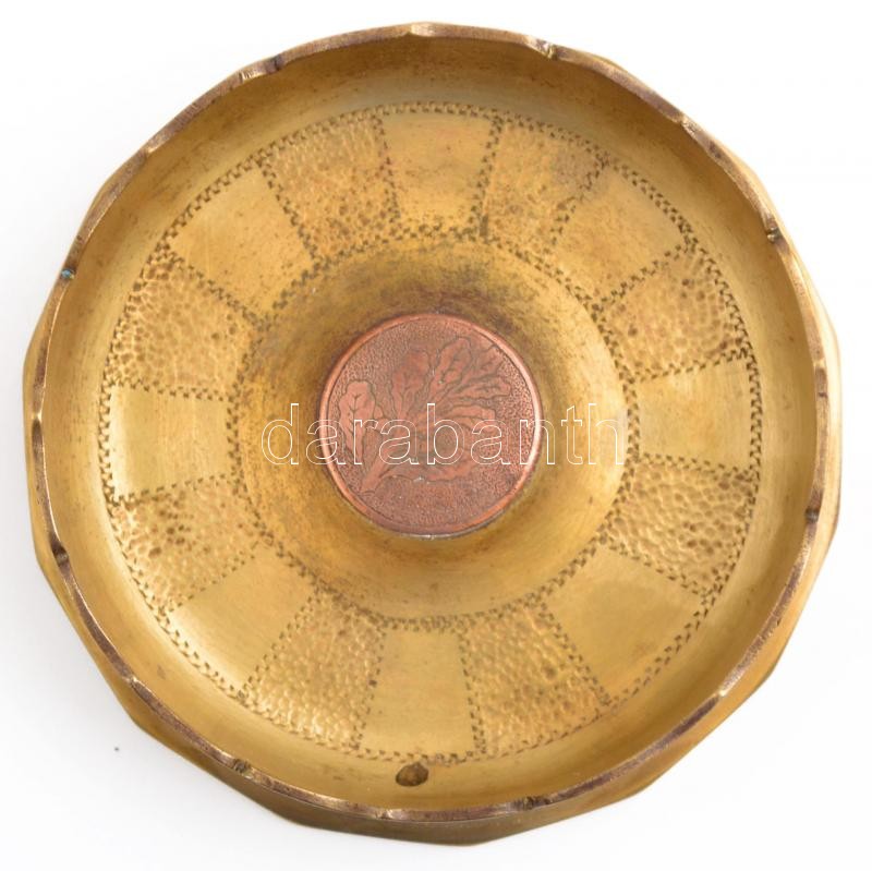 Beschreibung: 1917 ágyúhüvelyből készült bronz tálka, "Weihnachten im Felde" felirattal, d:11 cm