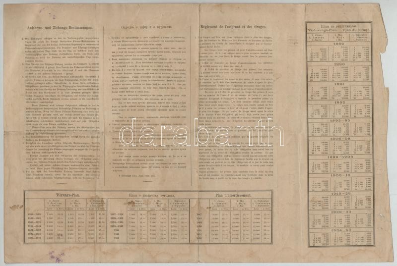Beschreibung: Szerbia / Belgrád 1889. Államkötvény 10D-ről, osztrák felülbélyegzéssel és bélyeggel (2x) T:III szakadások