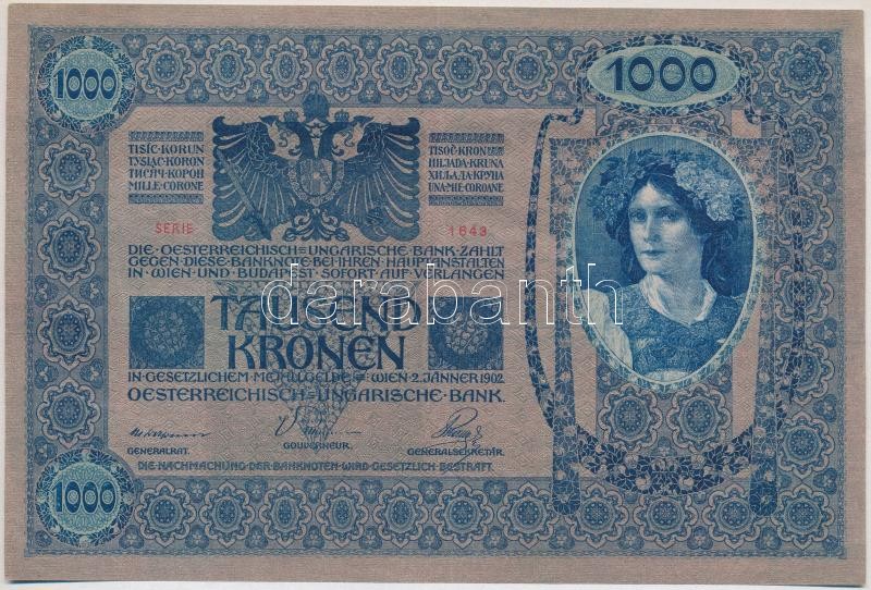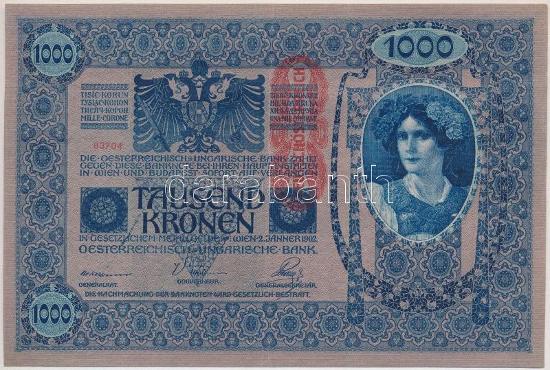 1902. 1000K piros "Deutschösterreich" felülbélyegzéssel, min... https://www.darabanth.com/de/349-Fernauktion/349.0/Numismatik/Ungarische-Banknoten~1000006/1902-1000K-piros-Deutschosterreich-felulbelyegzessel-mindket-oldala-nemet-TII~II1968091