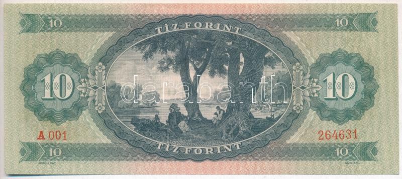 1962. 10Ft "A 001" sorozatjellel T:I https://www.darabanth.com/de/349-Fernauktion/349.0/Numismatik/Ungarische-Banknoten~1000006/1962-10Ft-A-001-sorozatjellel-TI~II1982730