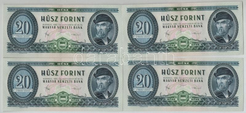 1980. 20Ft (4x) sorszámkövetők T:I- törés nélküli hajlás