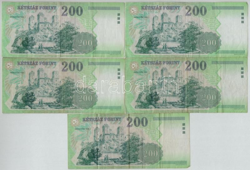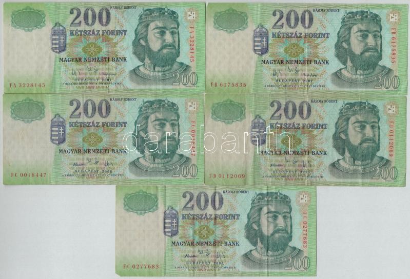 2005-2007. 200Ft (5x) T:III https://www.darabanth.com/de/349-Fernauktion/349.0/Numismatik/Ungarische-Banknoten~1000006/2005-2007-200Ft-5x-TIII~II1981344