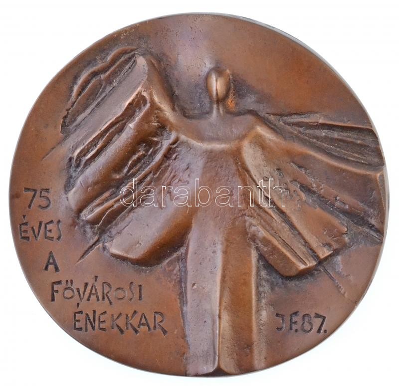 1987. "75 éves a Fővárosi Énekkar" kétoldalas Br plakett, hátlapon gravírozva. Szign.: JF (~127mm) T:2