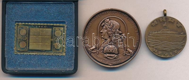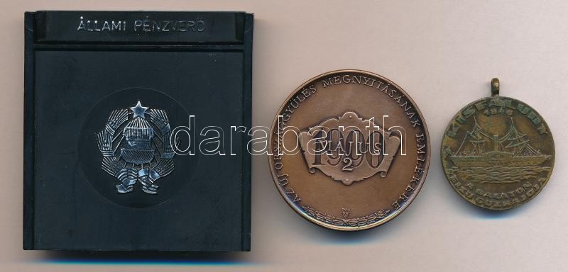 Beschreibung: 3db-os vegyes magyar emlékérem tétel, közte 1984. "Naptár" bélyegérem sérült ÁPV tokban (38x23mm) T:1-,2