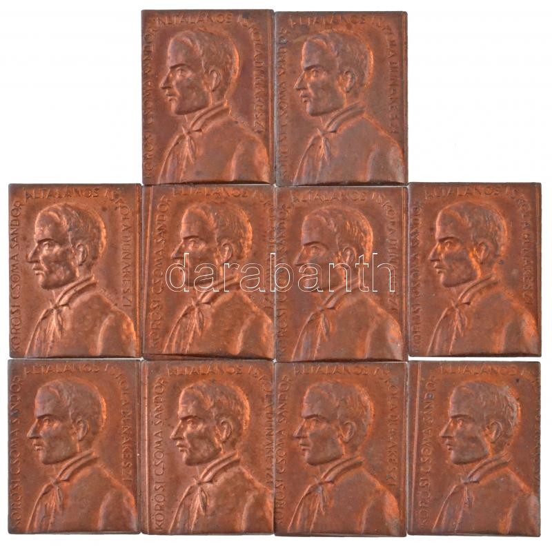 Beschreibung: Szabó Imre (1947- ) DN "Kőrösi Csoma Sándor Általános Iskola Dunakeszi" (10x) kisméretű, egyoldalas Br plakett, félkész jelvény(?) (24x18mm) T:1-