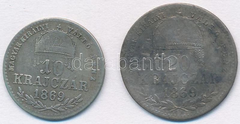 Beschreibung: 1869KB 10kr Ag + 20kr Ag "Magyar Királyi Váltó Pénz" T:2-,3 patina