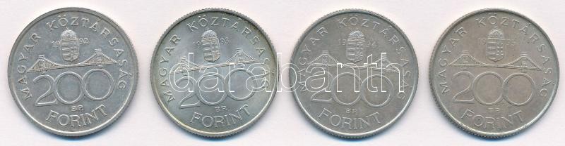 Beschreibung: 1992. 200Ft Ag "MNB" + 1993. 200Ft Ag "MNB" + 1994. 200Ft Ag "Deák" + 1995. 200Ft Ag "Deák" T:1-